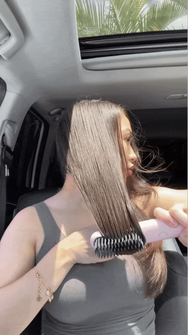 W jednym prostym kroku uzyskasz gładkie, miękkie i lśniące włosy, dbając jednocześnie o zdrowie ich włókien.Wystarczy włączyć szczotkę, ustawić odpowiednią temperaturę dla swojego rodzaju włosów, a następnie powoli szczotkować od nasady aż po końce.